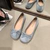 Французские замшевые балетки с бантом, весна-лето, новые нежные женские туфли на плоской подошве с одной педалью и мягким носом