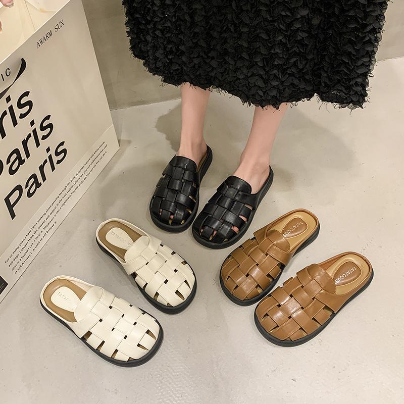 Баотоу тапочки женские 2024 лето новые римские плетеные пляжные туфли полые мягкая подошва ретро полушлепанцы уличные тапочки