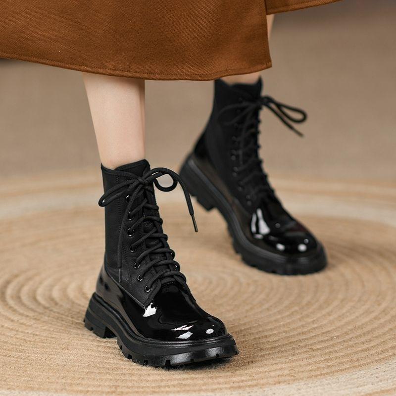 Яркие кожаные ботинки Martin женские осень-зима 2024 новые короткие лакированные ботинки в стиле колледжа яркие узкие ботинки на шнуровке спереди — купить товар онлайн с бесплатной доставкой по всему миру!