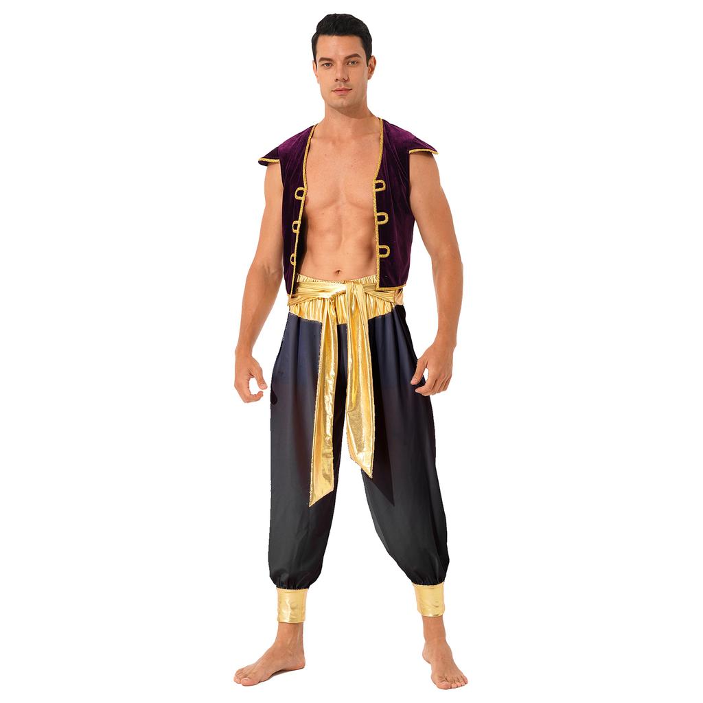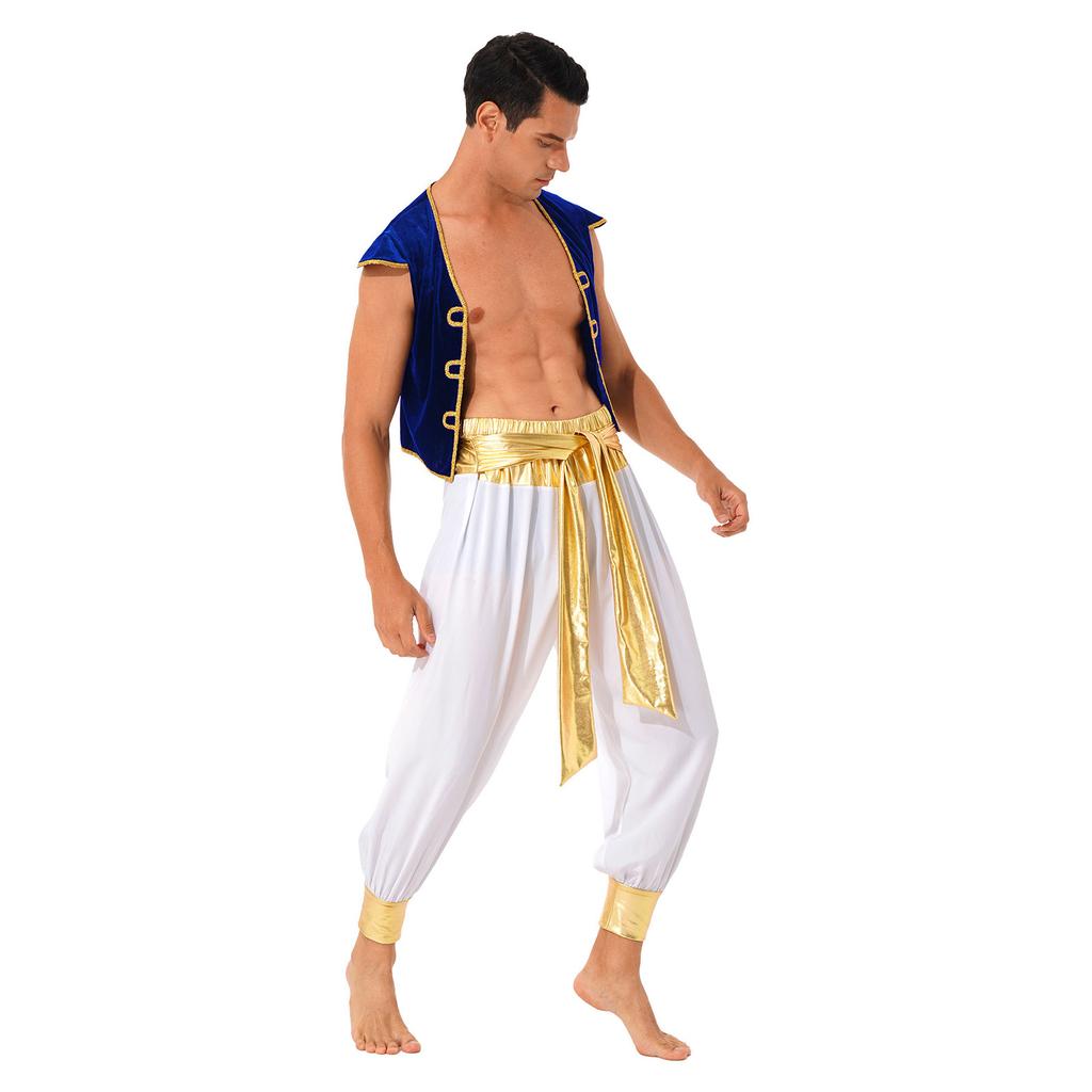 Мужской костюм арабского принца, жилет с короткими рукавами, брюки-шаровары с поясом, наряд для ролевых игр, Хэллоуина, маскарадного бала