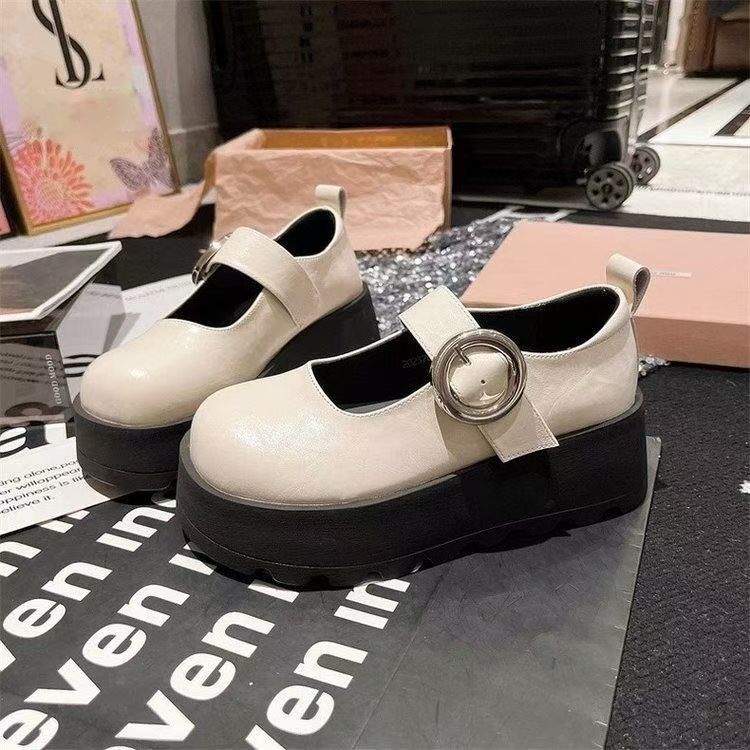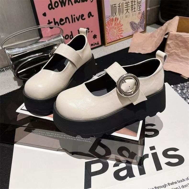 Ретро увеличивающие рост туфли-лодочки с открытым верхом, модные туфли на толстой подошве-маффине, с круглым носком и ремешком Мэри Джейн, женские, новые модели весна-осень 2025