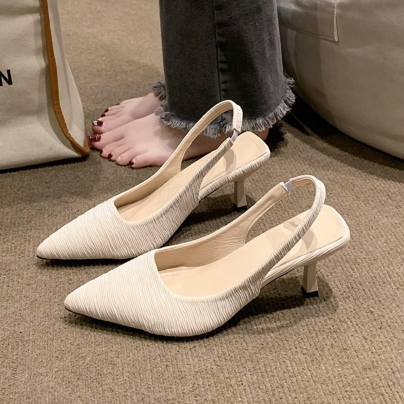 Босоножки Баотоу женские 2024 новые французский острый носок, легкий вырез, тонкий каблук, туфли-лодочки, атласный темперамент, туфли на высоком каблуке для светской львицы