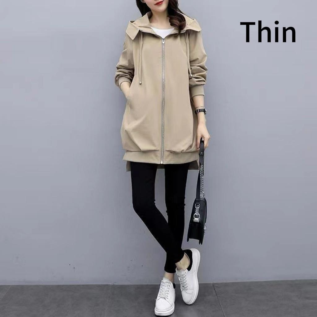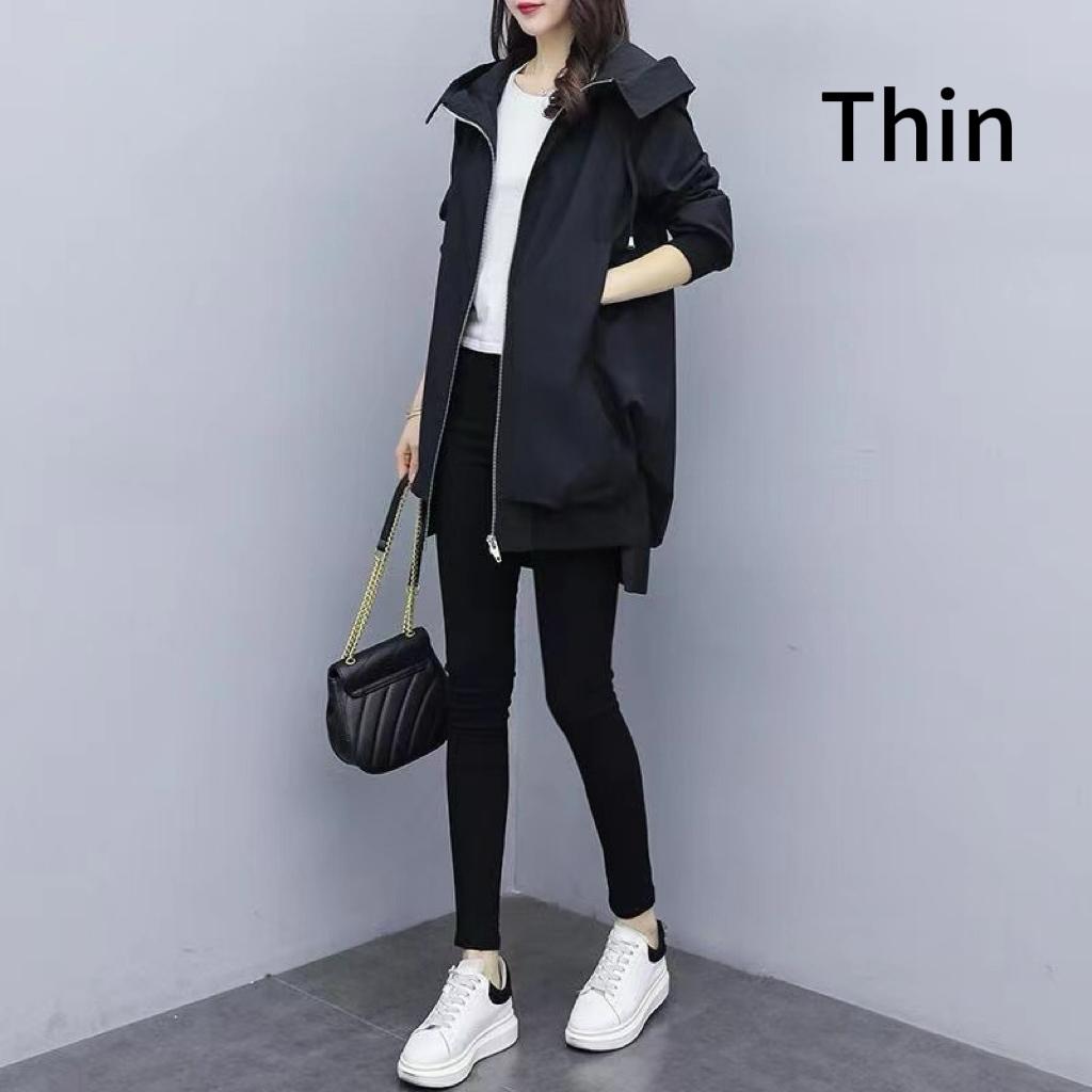Женские свободные куртки-тренчи с капюшоном, на молнии, с длинным рукавом, с карманами, однотонные, для офиса, для женщин, сращивание, верхняя одежда для отдыха, весна
