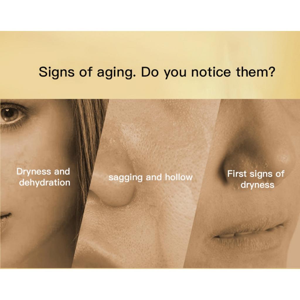 Борется с сухостью, морщинами и потерей эластичности с помощью коллагена, обогащенного золотом.