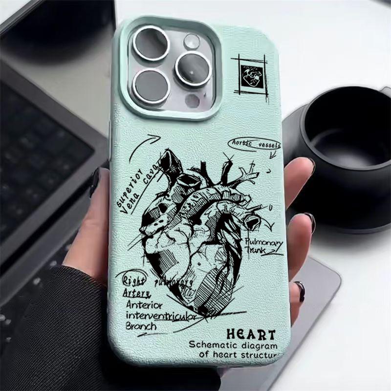 Для iPhone 16 15 Pro Max 14 Pro 13 12 11 чехол с рисунком сердца TPU кожа текстура мягкий матовый ударопрочный тонкий чехол для телефона