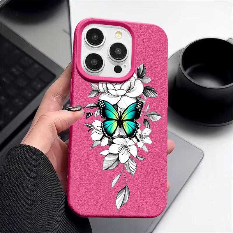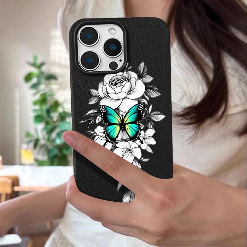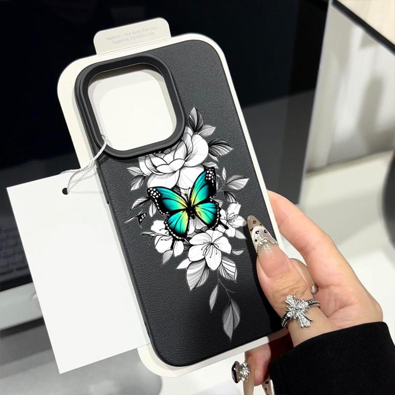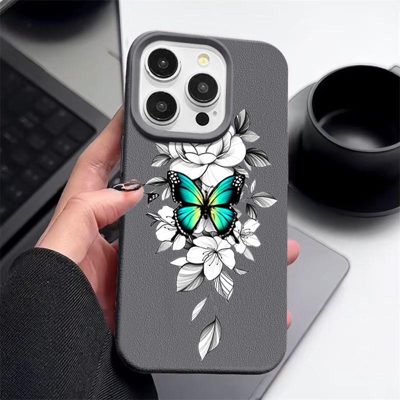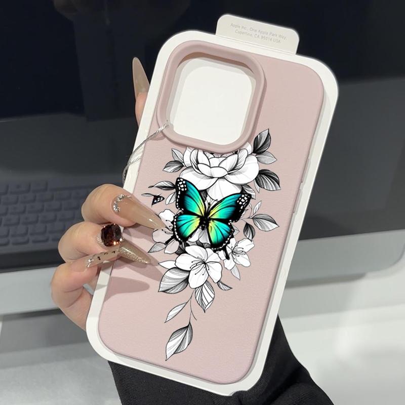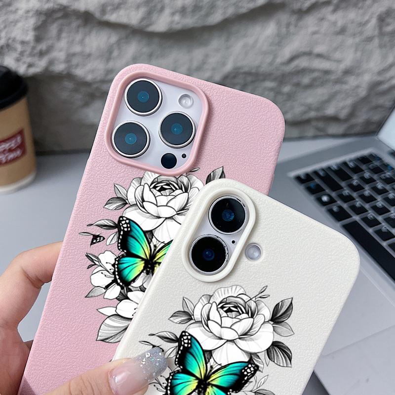 Чехол из ТПУ с рисунком бабочки и текстурой из кожи для iPhone 16 Pro Max 15 Pro 14 13 12 11, мягкий матовый противоударный, защита линз, тонкий чехол для телефона