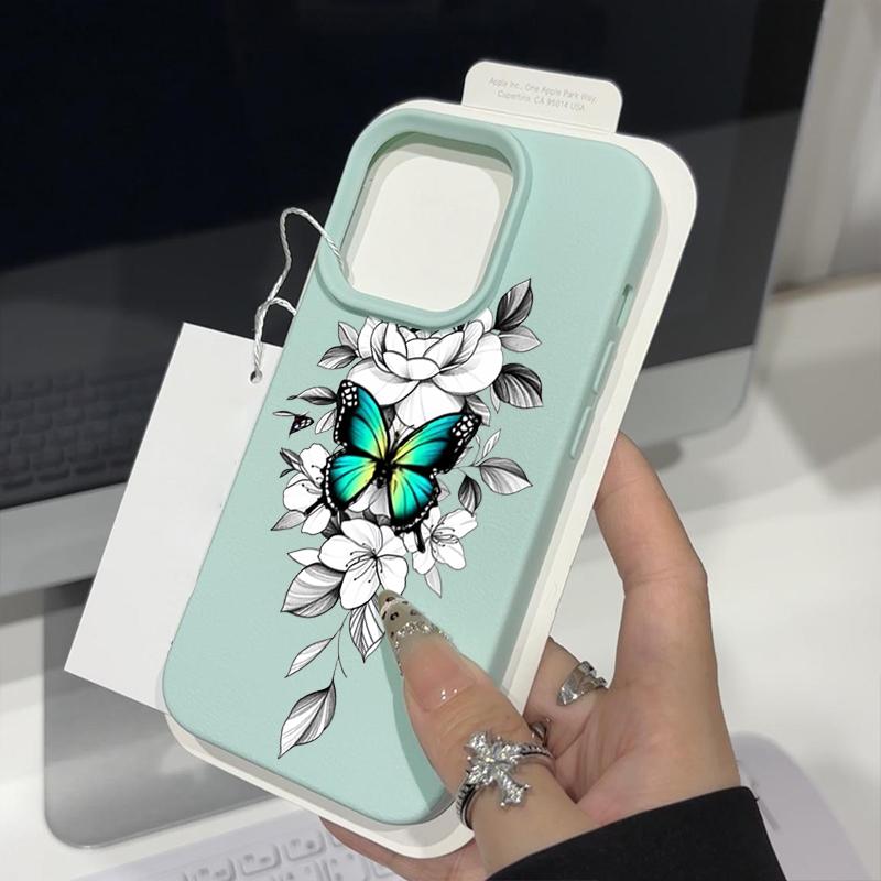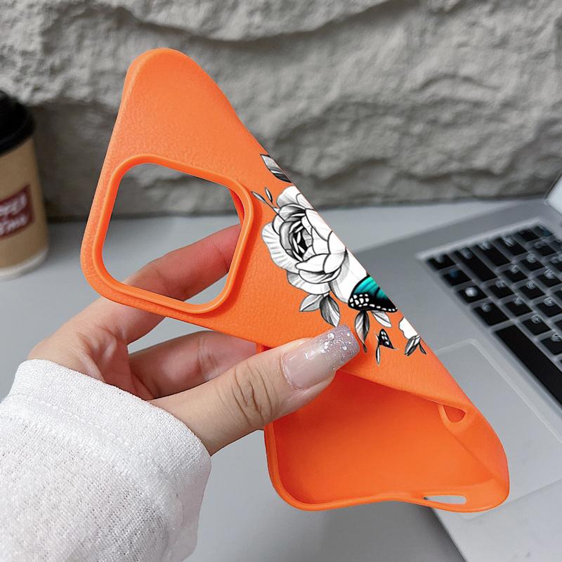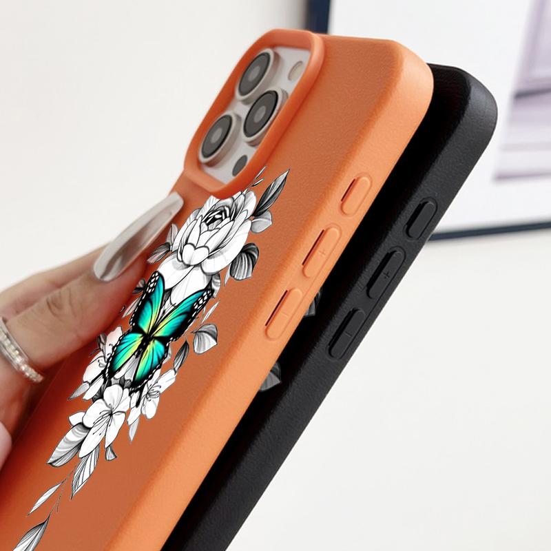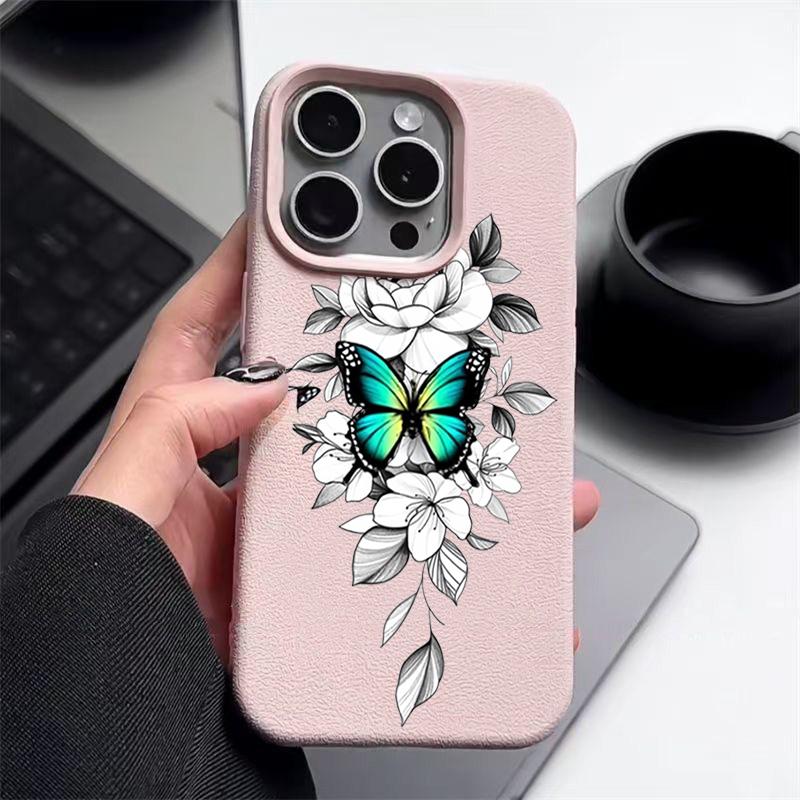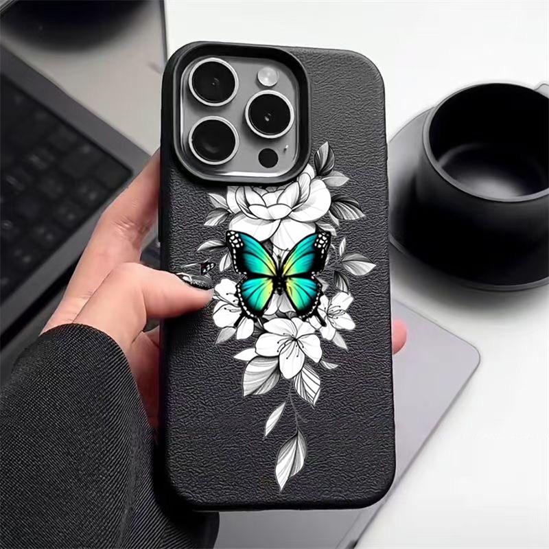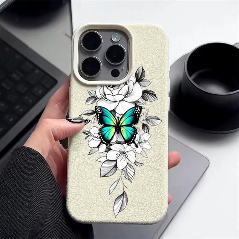Чехол из ТПУ с рисунком бабочки и текстурой из кожи для iPhone 16 Pro Max 15 Pro 14 13 12 11, мягкий матовый противоударный, защита линз, тонкий чехол для телефона