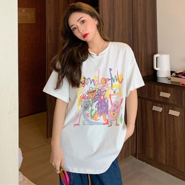 Винтажные забавные мультяшные принты для молодых девушек, футболки с короткими рукавами для женщин, летние повседневные свободные футболки в стиле Харадзюку, белые топы y2k — купить товар онлайн с бесплатной доставкой по всему миру!