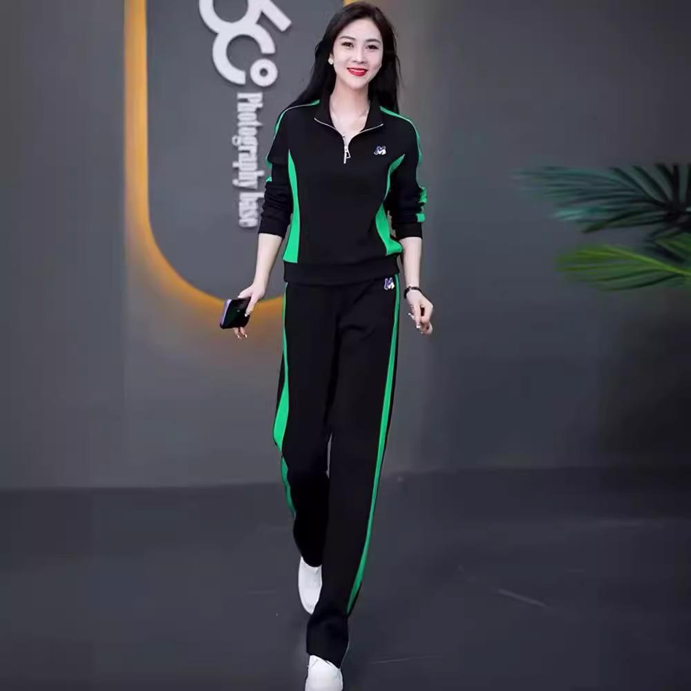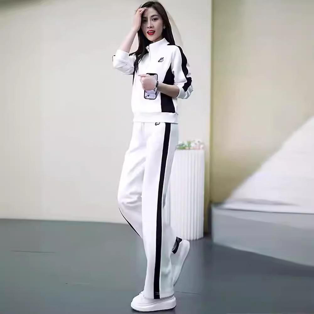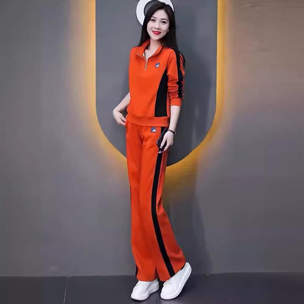 Повседневный спортивный костюм женский весенне-осенний модный тонкий свитер в стиле вестерн с широкими брюками костюм из двух частей