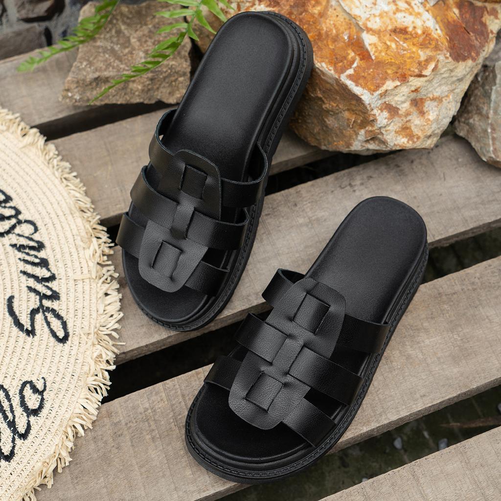 Тапочки большого размера 2025 новые тапочки на плоской подошве на толстой подошве повседневные тапочки с одним ремешком для улицы женская обувь