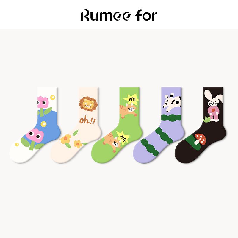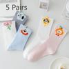 5 пар женских трендовых мультяшных носков-труб на весну и лето