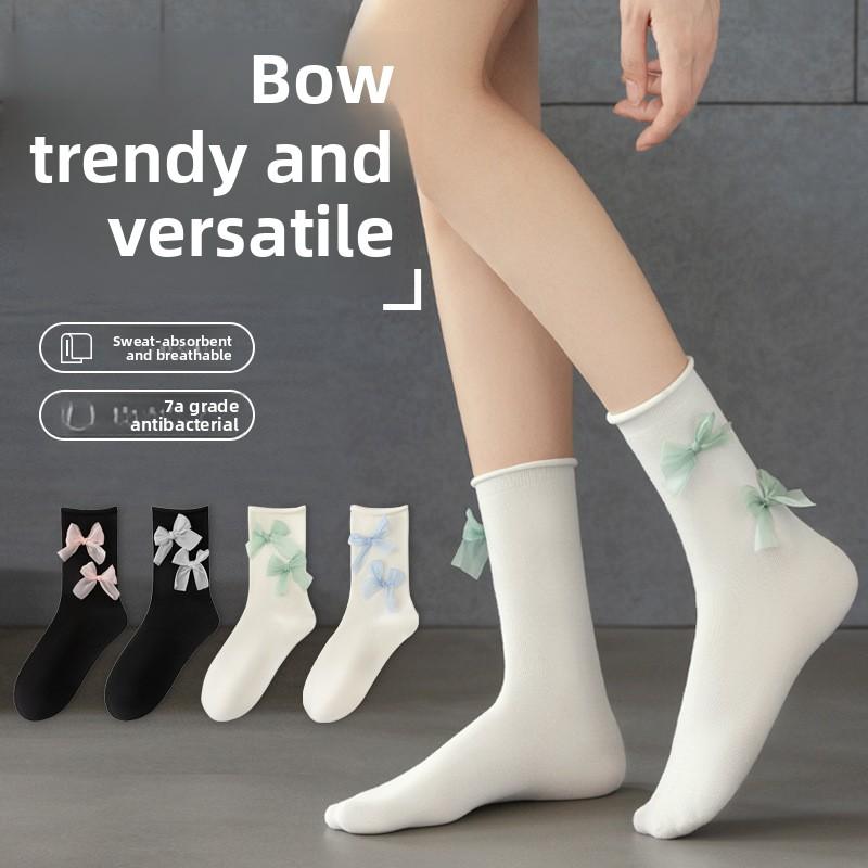 5 пар новых женских носков-труб с нескользящей отделкой и милым бантом на весну и лето — купить товар онлайн с бесплатной доставкой по всему миру!