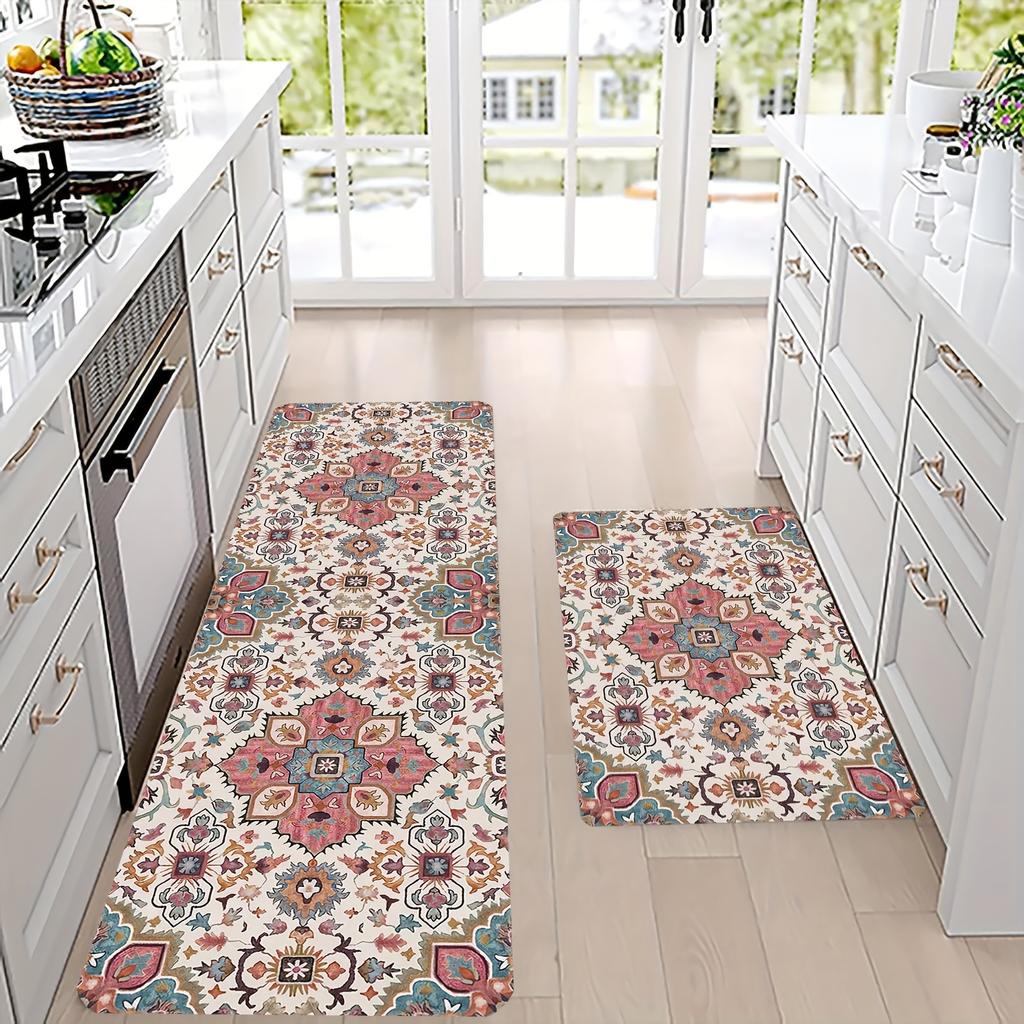 Эти толстые и мягкие кухонные коврики и дорожки обеспечивают достаточную поддержку стоп и коленей в течение длительного времени, независимо от того, работаете ли вы или готовите.. Имеет классический узор, который может сочетаться с любым существующим домашним декором.. Эти кухонные коврики имеют противоскользящую подложку, обеспечивающую безопасность вас и вашей семьи.. Его можно использовать на многих поверхностях, таких как мрамор, дерево, керамика и т. д.. Перед использованием важно убедиться, что поверхность сухая и ровная!