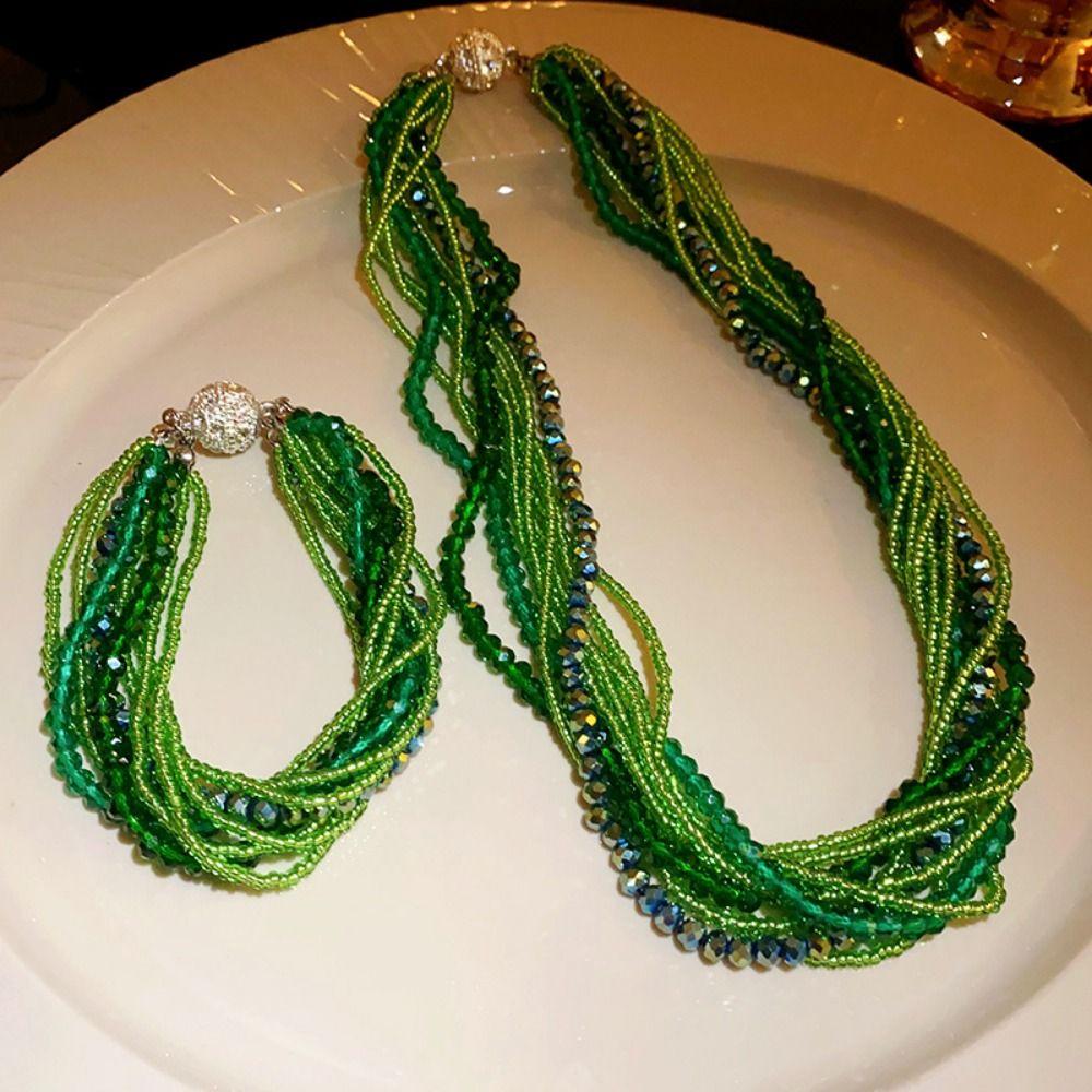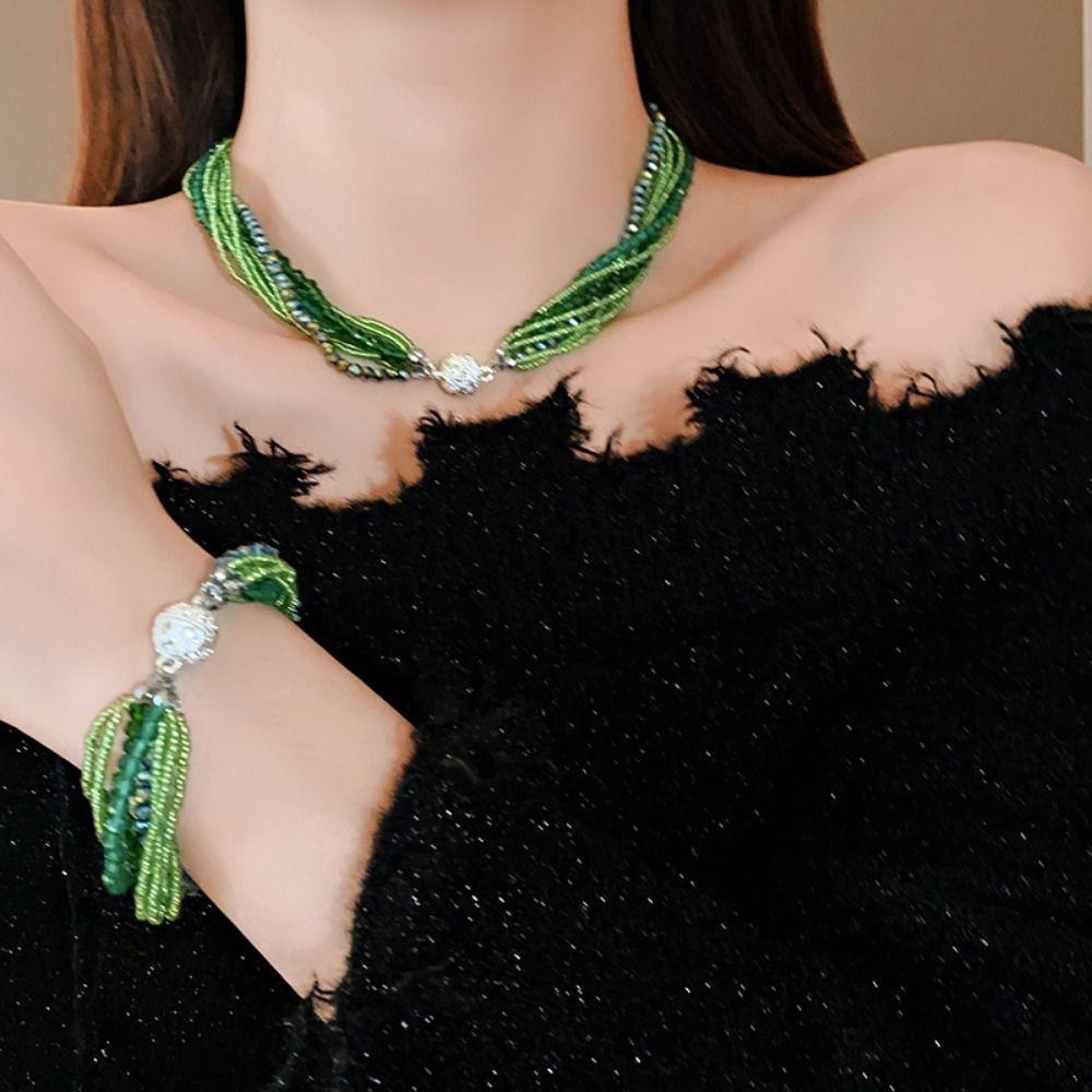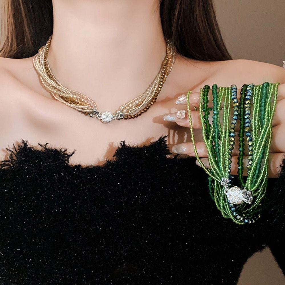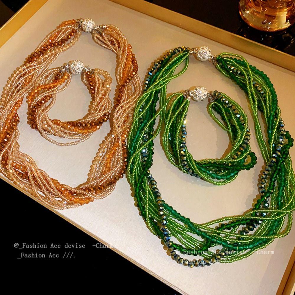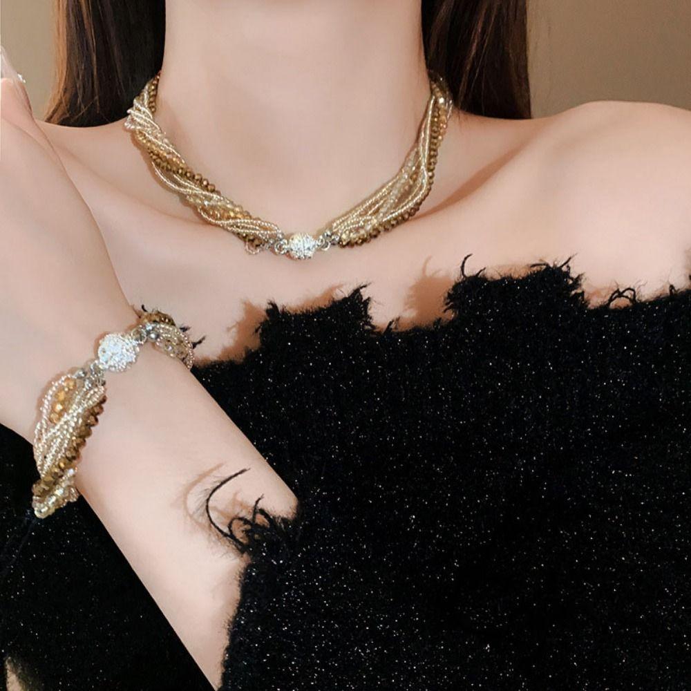 Инкрустированный стразами Браслет/ожерелье с инкрустацией стразами Многослойный браслет из хрустальных бусин для женщин
