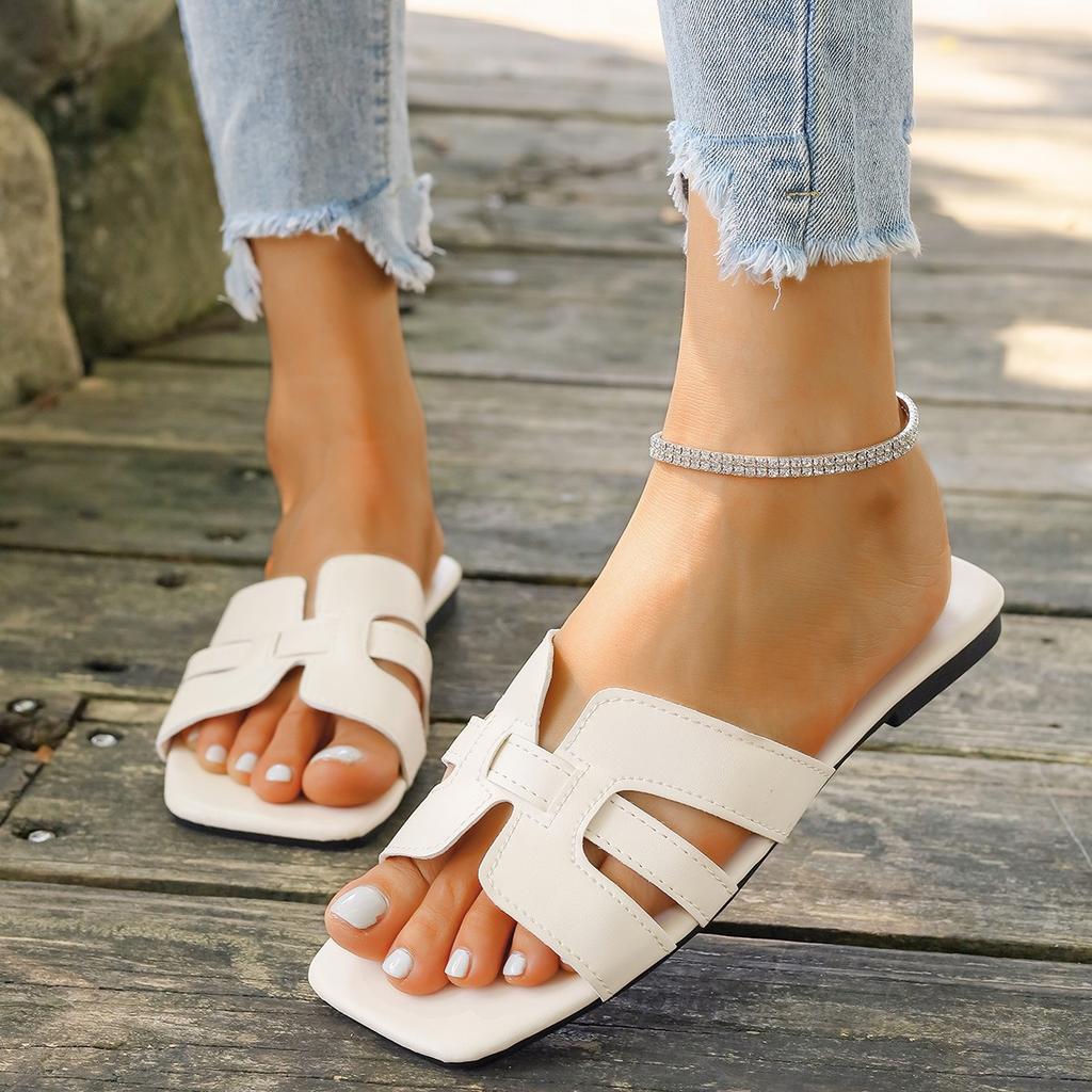 Мода 2025 года, большой размер, модные тапочки с плоской подошвой в иностранном стиле, универсальные повседневные тапочки с квадратной головкой, универсальные классные тапочки