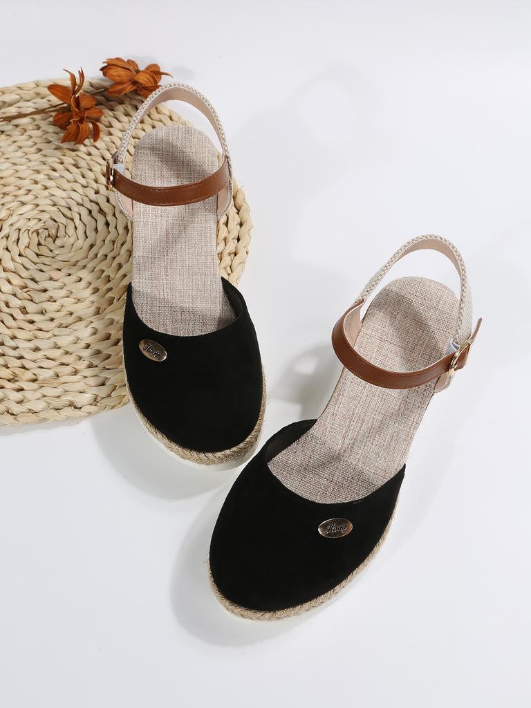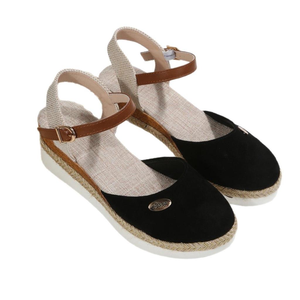 Летние новые сандалии большого размера с сумкой на голове, пустые, с наклонным каблуком, толстая подошва, римские сандалии, пряжка, верхняя одежда, универсальная