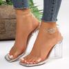 Size 35-42 transparent high-heeled sandals 2025 summer new sexy square head word with thick-heeled sandals women