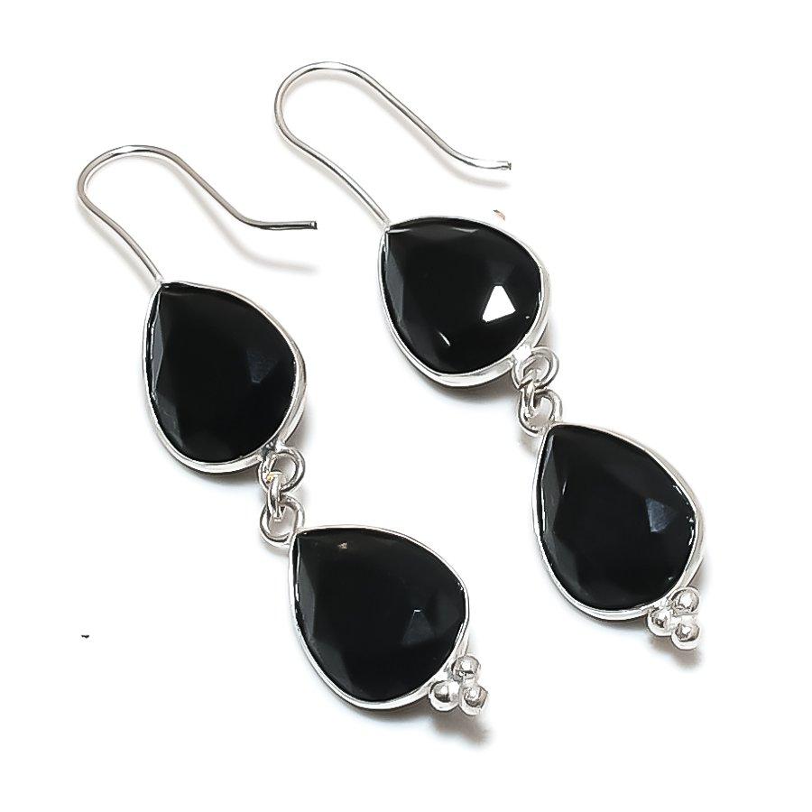 Серьги из стерлингового серебра 925 пробы с натуральным черным камнем шпинелью 2,36 дюйма A5f14