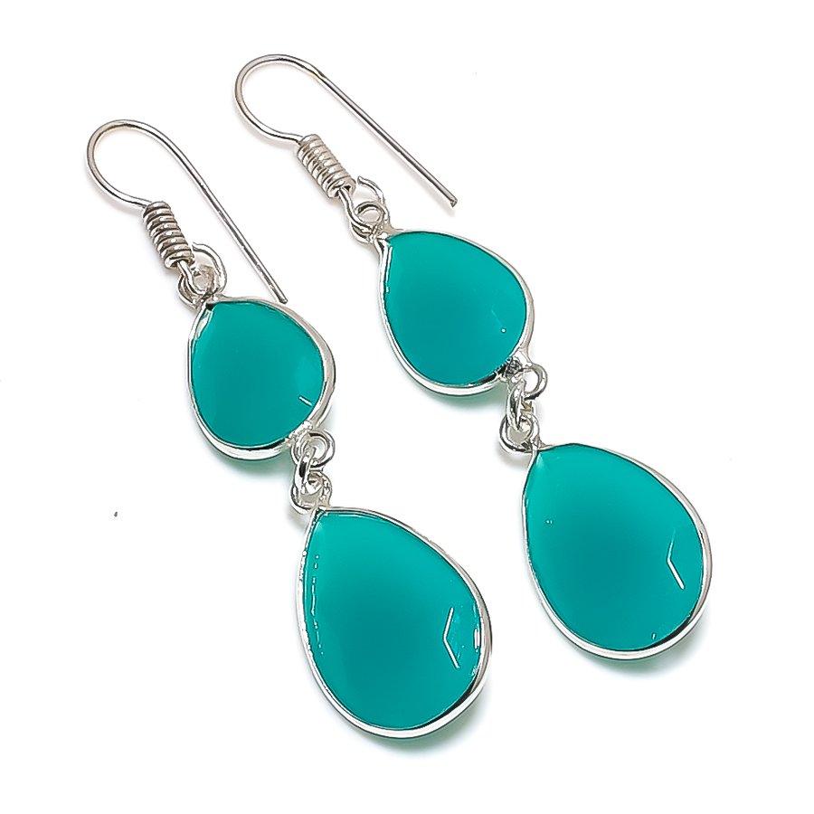 Натуральный зеленый оникс драгоценный камень 925 стерлинговое серебро ювелирное изделие серьга 2.21" r7d22