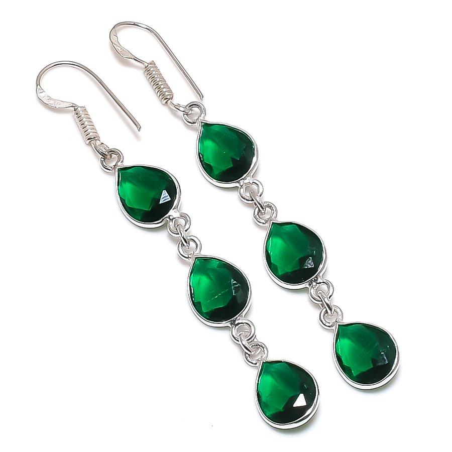 Натуральный хромдиопсид драгоценный камень 925 стерлинговое серебро ювелирные изделия серьга 2.52" u1j36