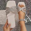 Женские босоножки-слайды со стразами, повседневные туфли на плоской подошве с квадратным открытым носком, легкие босоножки-слайды