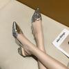 2024 Лето Новые Модные Туфли На Высоком Каблуке Женские Кожаные Остроносые Золотые Женские Босоножки На Толстом Каблуке Женские Свадебные Туфли