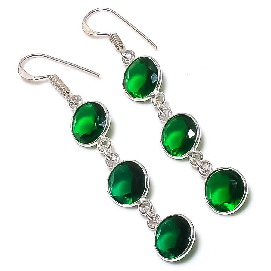 Натуральный Хромдиопсид Драгоценный камень 925 Стерлинговое серебро Ювелирное изделие Серьга 2,29" y1O76