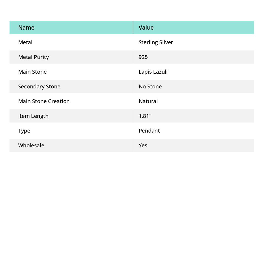 Lapis Lazuli Gemstone Handmade 925 Sterling Silver Jewelry Pendant 1.81" w1o72
