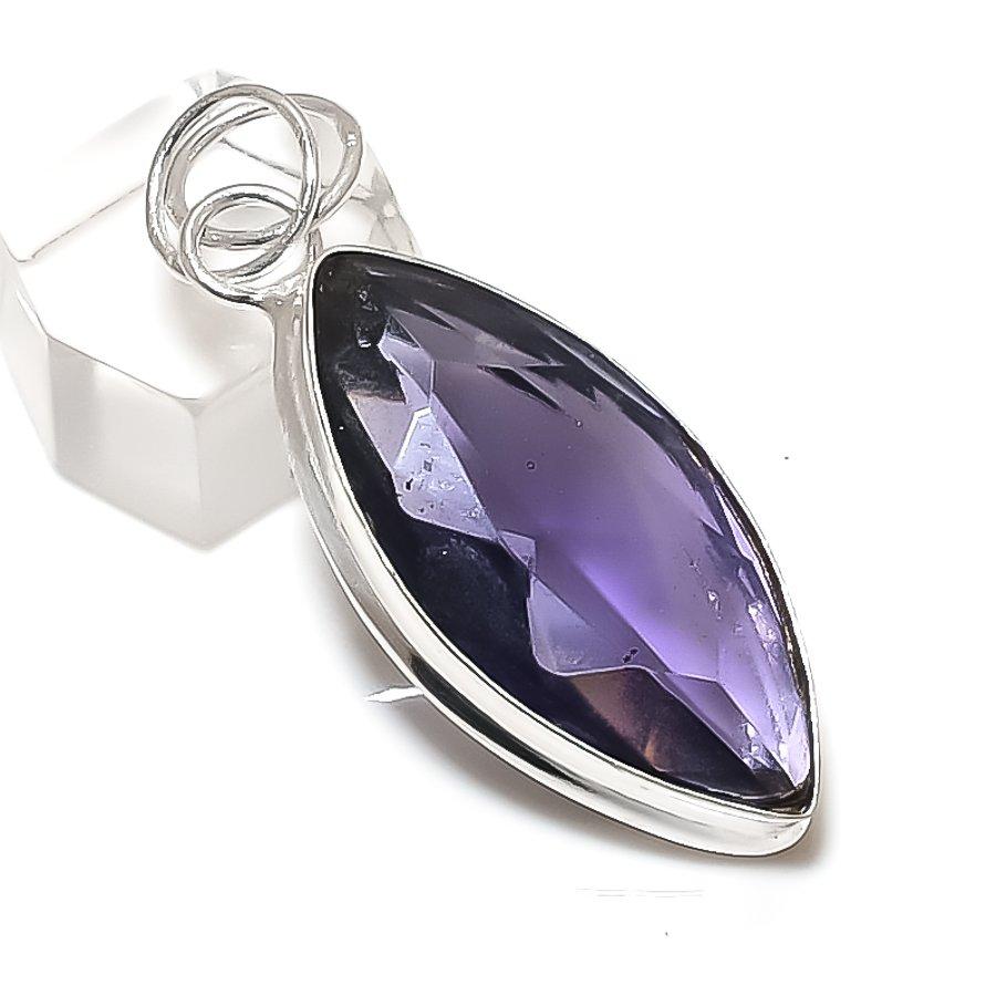 Аметист Драгоценный камень Ручная работа 925 Стерлинговое серебро Ювелирное изделие Подвеска 2.09"