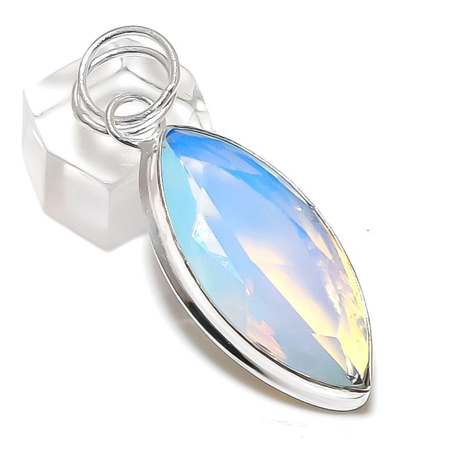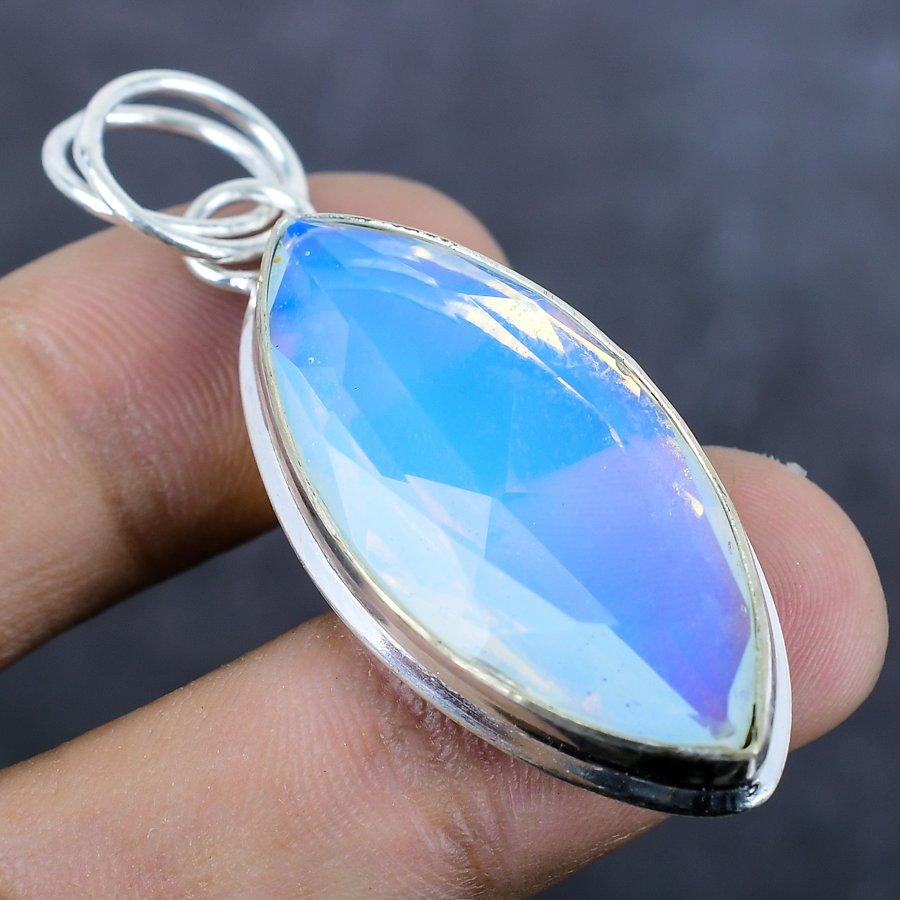 Молочный опал драгоценный камень ручной работы 925 стерлинговое серебро ювелирное изделие кулон 2,17"