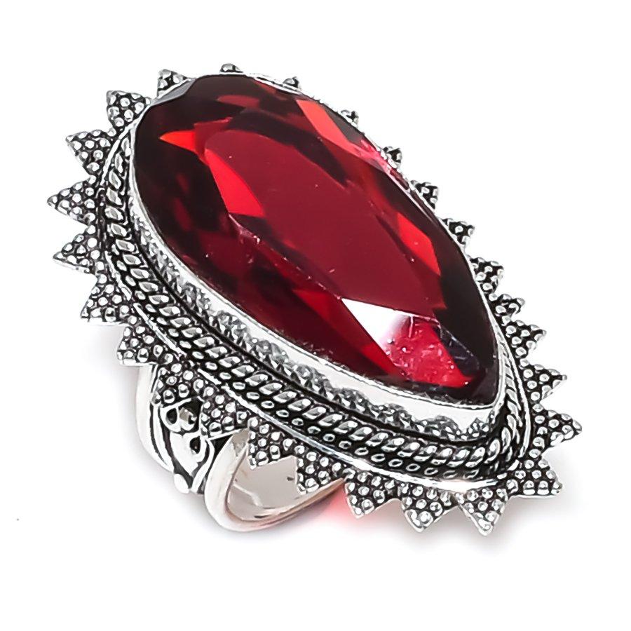 Гранат Драгоценный камень Ручной работы 925 Стерлинговое серебро Ювелирное кольцо Размер 9 E7P26