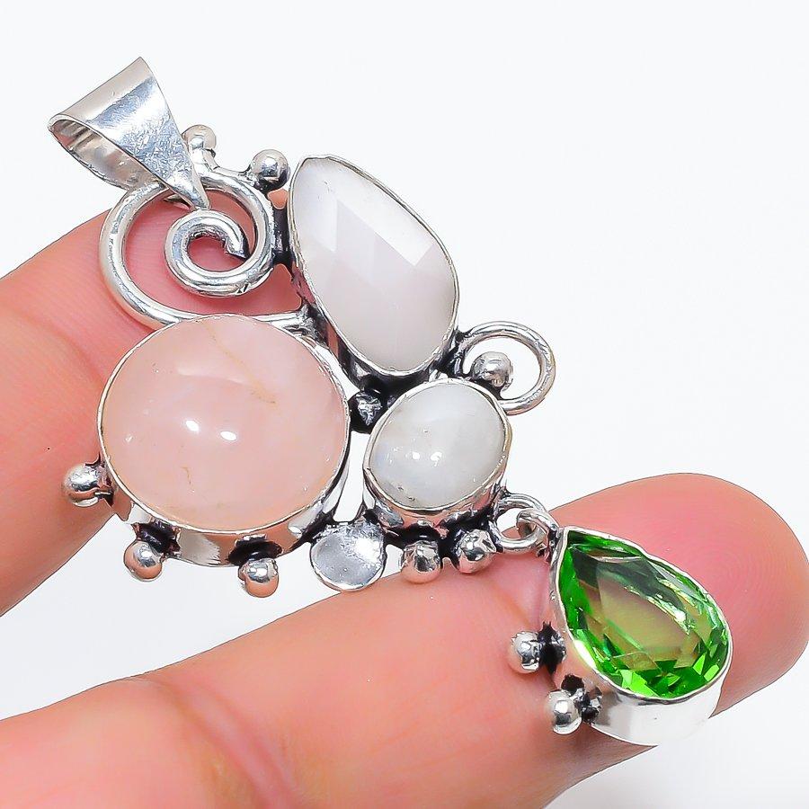 Натуральный розовый кварц, перидот 925 стерлинговое серебро ювелирная подвеска 2,36" i3S67