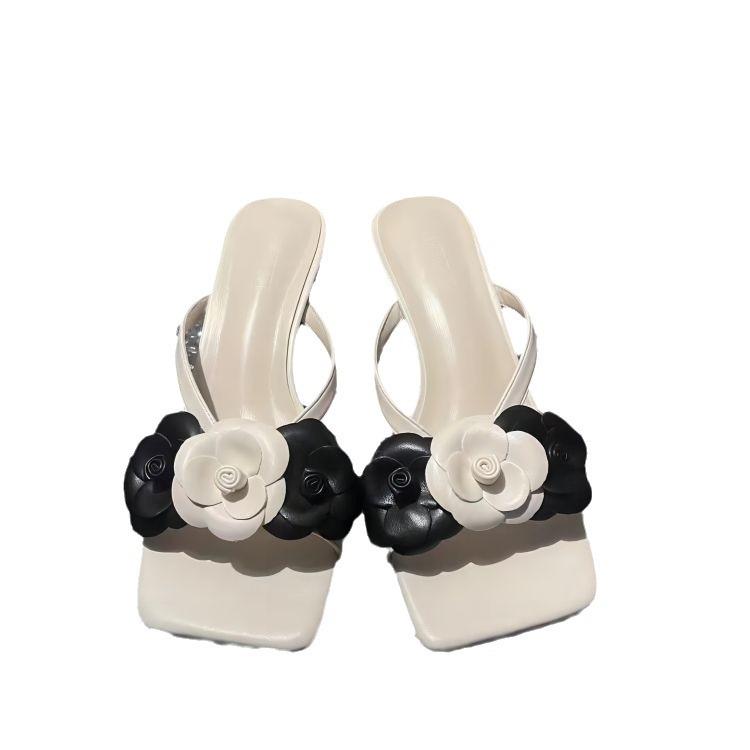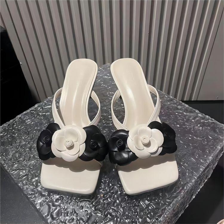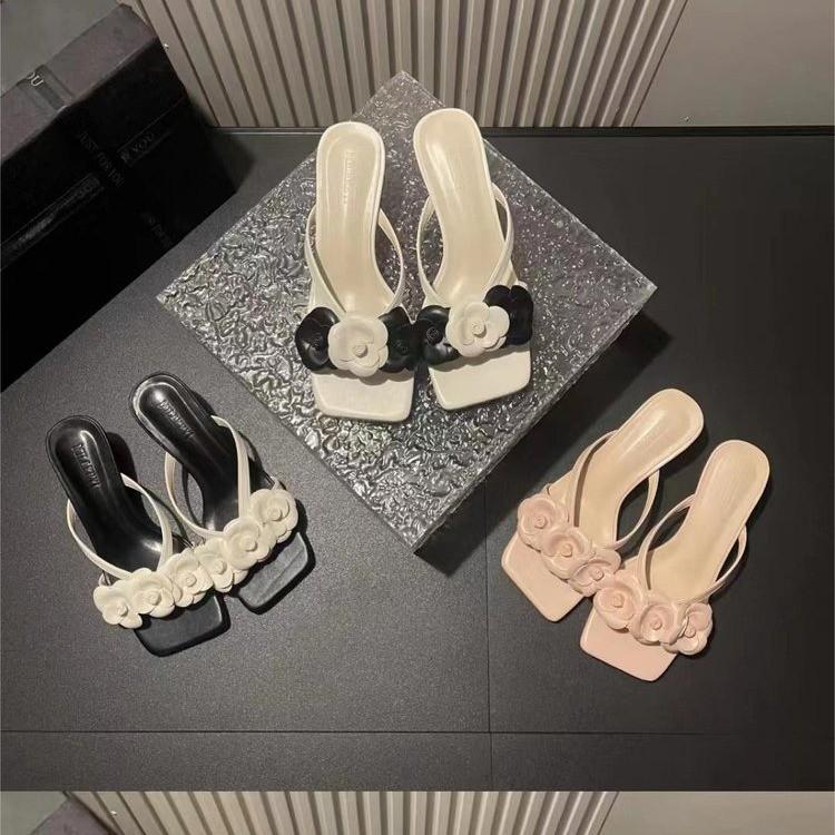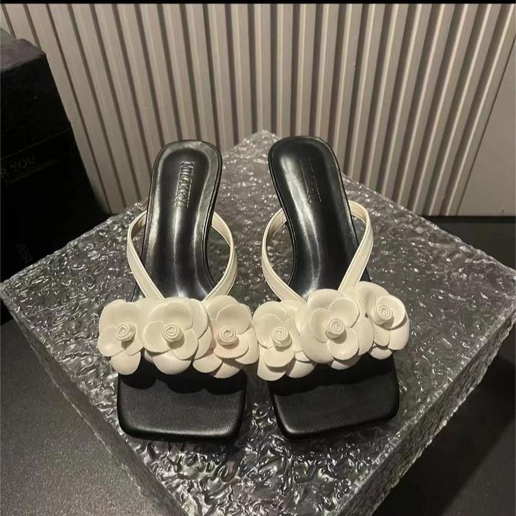 Интернет-знаменитость фея ветер квадратный носок лепестки крутые шлепанцы женская обувь 2025 лето новые средний каблук носить универсальные шлепанцы