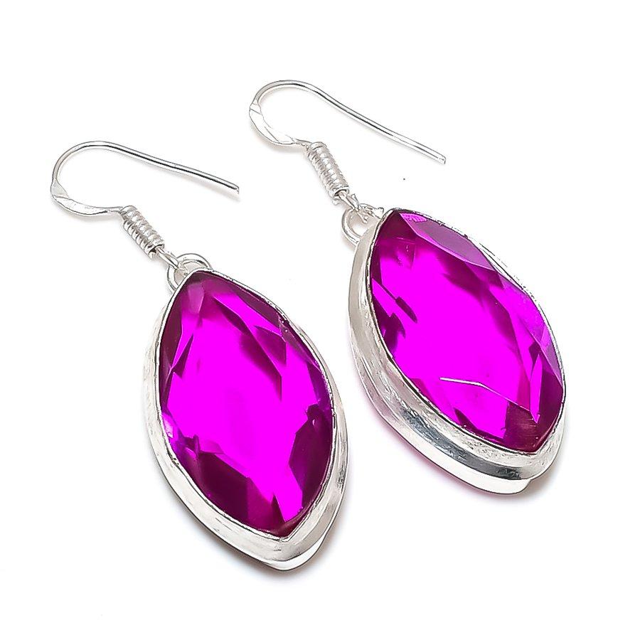 Розовый рубиллит драгоценный камень ручной работы 925 стерлинговое серебро ювелирное изделие серьга 1,89" Y4e34
