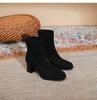 Square head plus suede short boots women's boots autumn and winter elastic thin boots thick heel medium heel single boots gray apricot Martin boots — купить товар онлайн с бесплатной доставкой по всему миру!