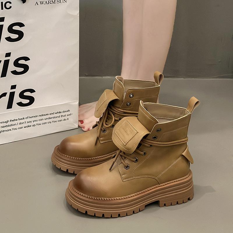Ботинки Мартин на толстой подошве короткие кожаные женские 2024 новые полированные ретро небольшие с увеличением роста короткие осенне-зимние ботинки цвета ревеня