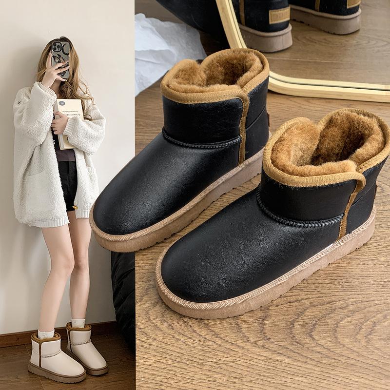 2024 зима новые хлопковые ботинки женские теплые ботинки кожаная поверхность хлопок утолщенный теплый уличный бархат зимние ботинки женские