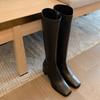 Женские сапоги на толстом каблуке, до середины колена, на резинке, новые длинные сапоги 2024 года с молнией сзади и тонкими квадратными носами рыцарских сапог