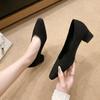 2025 spring and autumn new Korean version pointed head light mouth suede single shoes thick heel high heels middle heel versatile work shoes women
