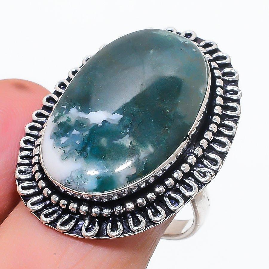 Натуральный индийский моховой агат драгоценный камень 925 стерлинговое серебро ювелирное кольцо размер 9 a6v13