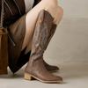 2024 осень и зима новые северо-западные сапоги Grassland тонкие рыцарские сапоги с V-образным вырезом толстые вышитые ковбойские сапоги в стиле вестерн