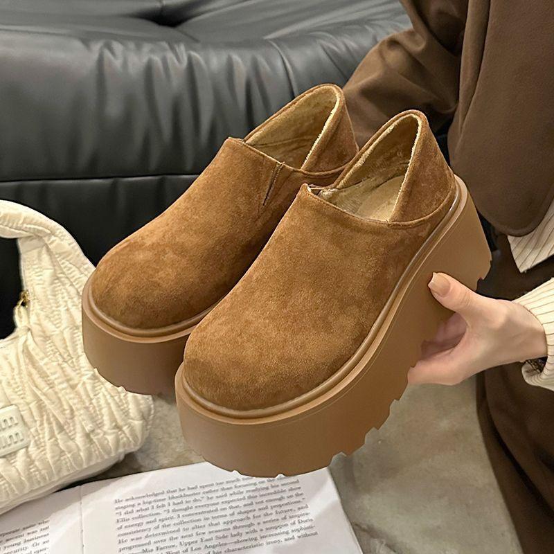 Британские ретро-кексы-лоферы 2024 года, осень-зима, новая мода, ленивые туфли с одной педалью, на толстой подошве, увеличивающие рост, из хлопка, женские