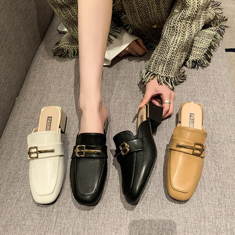 Тапочки Baotou, женская верхняя одежда, весна и осень 2024, новые модные универсальные классные тапочки с квадратным носком и низким каблуком, туфли muller