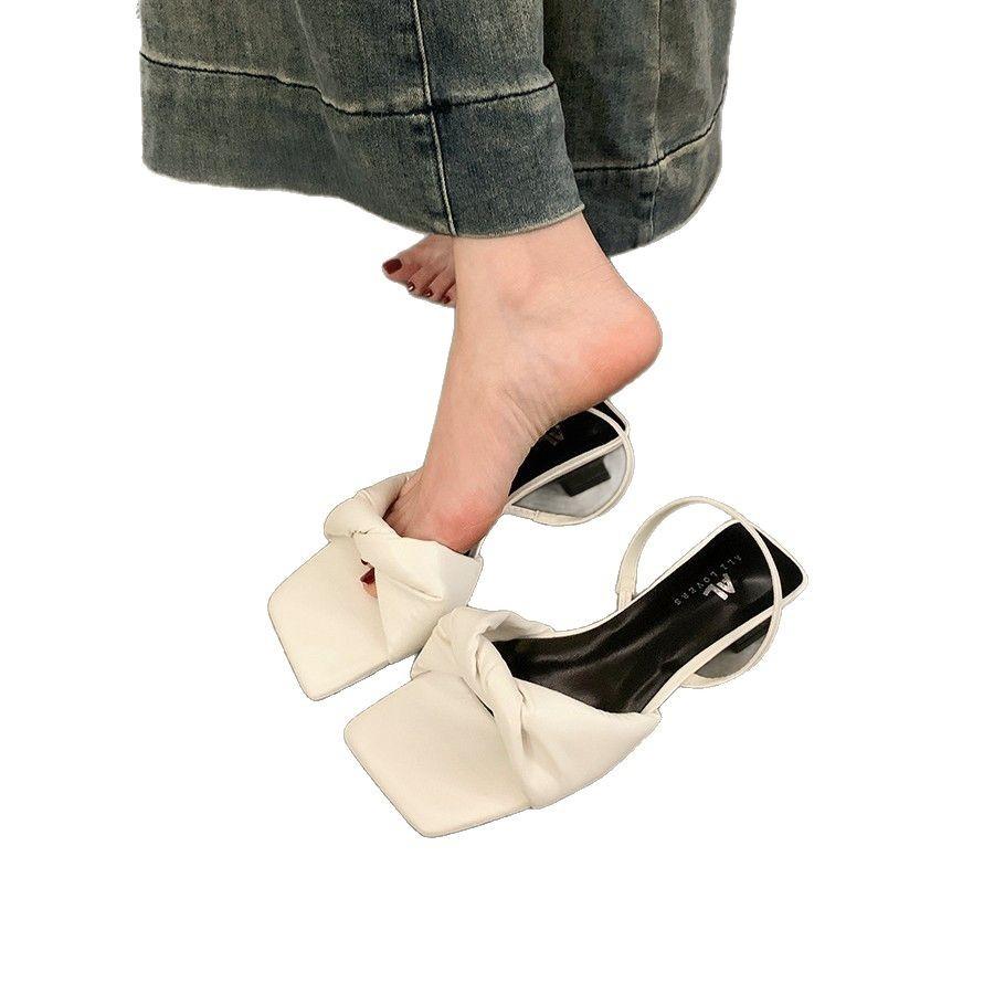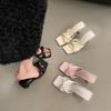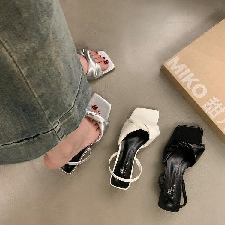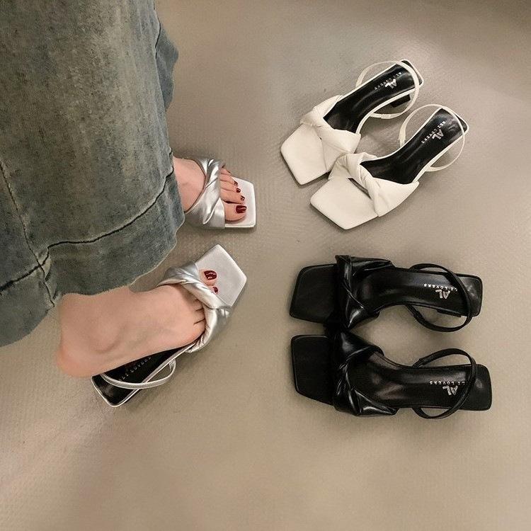 Французские серебристые туфли на высоком каблуке с сандалиями, туфельки феи 2025, новая летняя модель, квадратный носок, темпераментные римские туфли