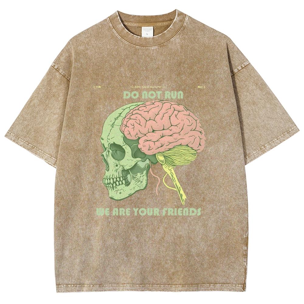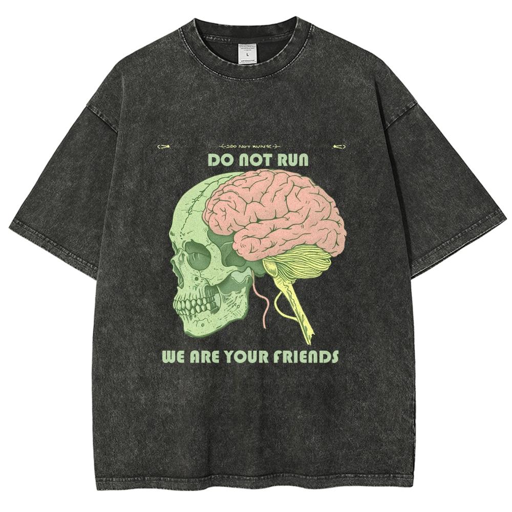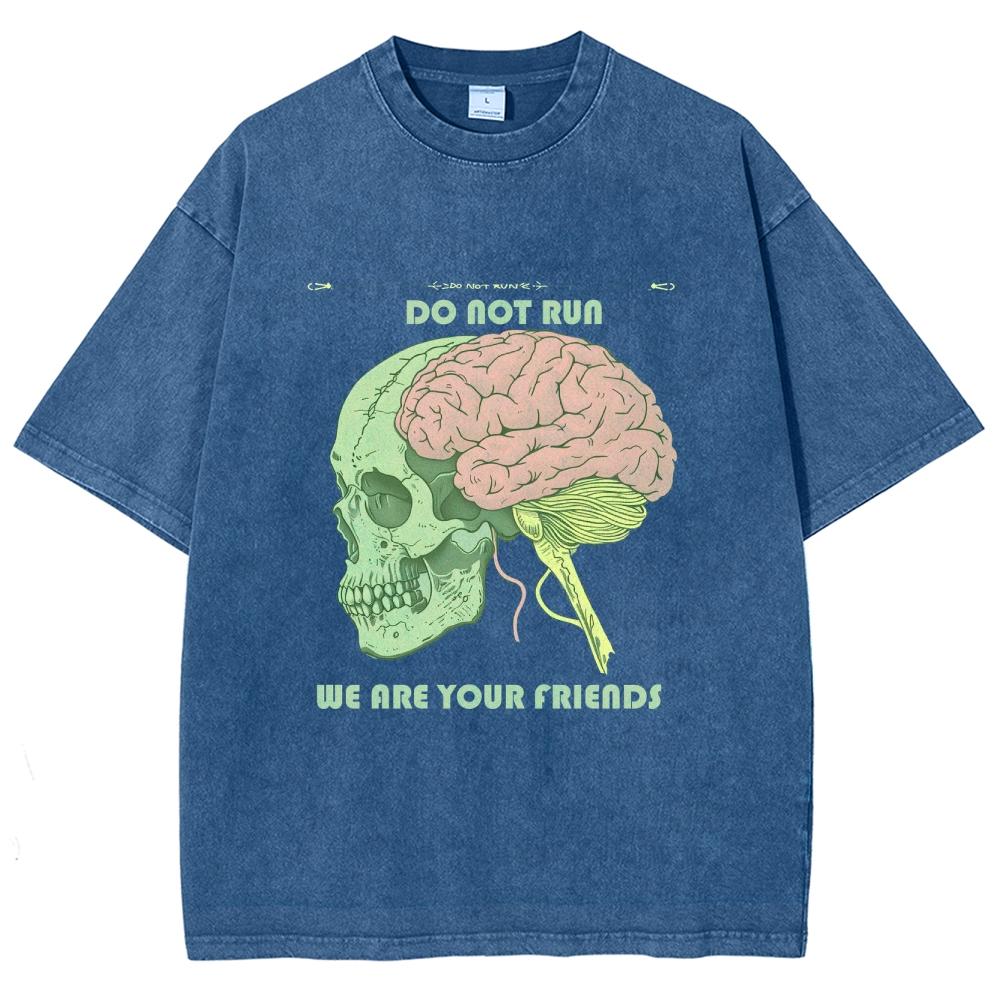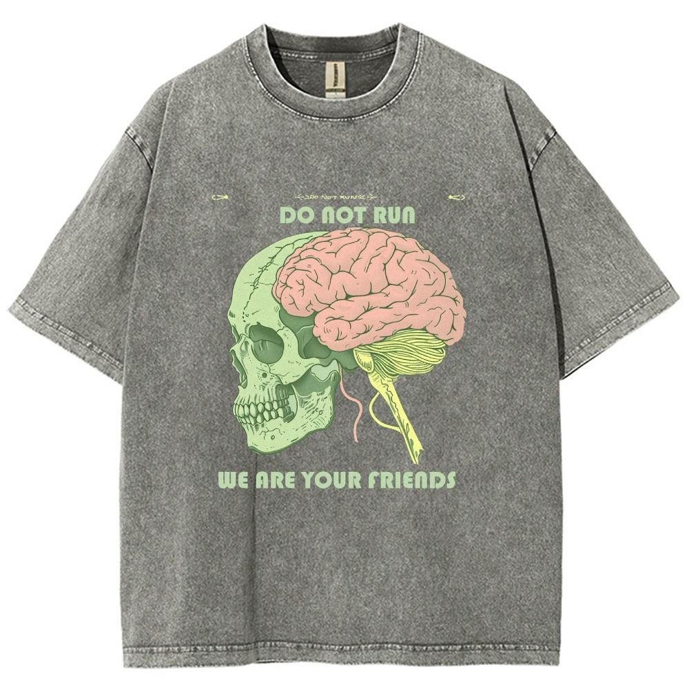 Женская футболка с принтом черепа и мозга, свободный хлопок, уличный тренд, топ с коротким рукавом, потертые футболки для подростков