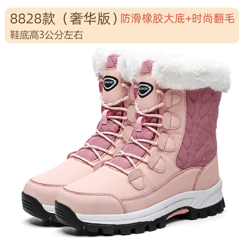 Зимние ботинки большого размера женские для улицы и путешествий, утепленные, с высоким голенищем, на толстом меху, хлопковые ботинки средней высоты, женская обувь