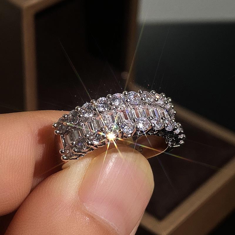 Cao Shi Luxury CZ женское платиновое кольцо с медным покрытием в форме лестницы