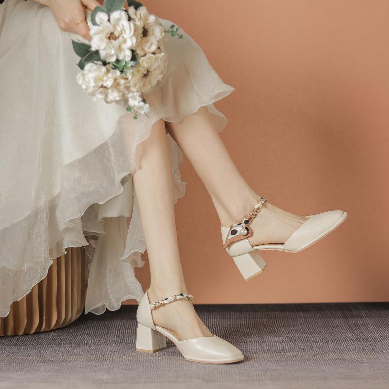 Yue Xinwang кожаные балетки для женской обуви Хуэйчжоу каблуки крутые шлепанцы носить лето новые Мэри Джейн на высоком каблуке сандалии