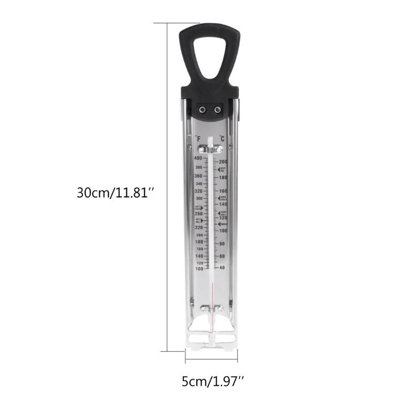 Термометр для приготовления пищи из нержавеющей стали идеально подходит для измерения точных точек установки варенья, сахара и температуры жарки во фритюре. Считывает от 40 до 200 с четко обозначенными температурными точками приготовления.