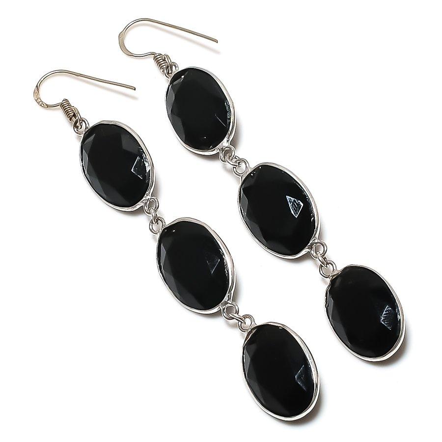 Натуральный черный шпинель драгоценный камень 925 стерлинговое серебро ювелирное изделие серьга 3.39" T3b52